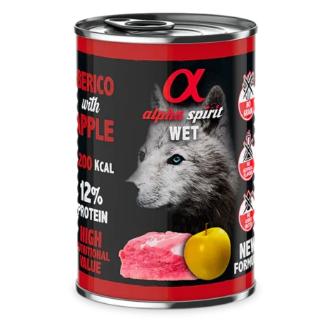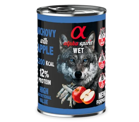 Boquerón 93%, manzana roja 4%, gelatina, fibra de remolacha, especias y minerales.